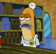 In Neptune's Spatula he told King Neptune that SpongeBob pulled the Spatula out of the grease. In Ripped Pants, he did not like the joke that SpongeBob told about the 'Banana Split' and 'Ripple'. In Life of Crime, he was the holder of the Stand for National Balloon Day, in which SpongeBob and Patrick stole a balloon from it. in No Weenies Allowed he is talking to Sandy about what they called. He is sometimes a cameo and has been seen in many other episodes. In The Sponge Who Could Fly, he teased at SpongeBob and thought he was a nutcase for trying to fly at the Barg' N'Mart.