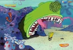The Monster has only appeared in the episode Your Shoe's Untied. He has many eyes and was one of the many people SpongeBob asked how to tie his shoe. He ate SpongeBob and inside of him was the Skeleton of a fisherman. SpongeBob also asked the Skeleton how to tie his shoe.