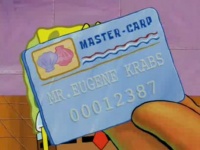 Master Crap is the credit card company Eugene H. Krabs uses in Whale of a Birthday. It's possible many Bikini Bottomites use this credit card company. Master Crap is a parody of Master Card, a real life credit card company.