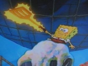 In Neptune’s Spatula, it is featured at the Fry Cook Museum, weighed into a griddle with dried grease. Legend says that only a fry cook worthy of King Neptune himself can pull out the spatula from the dried grease on the griddle. SpongeBob SquarePants pulls it out and goes to the ultimate fry cook challenge with Patrick Star and Eugene H. Krabs. King Neptune then loses and invites SpongeBob to Atlantis.