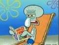 - In the episode To SquarePants or Not to SquarePants, Squidward reads the magazine while he is lying in the sun in front of his house.